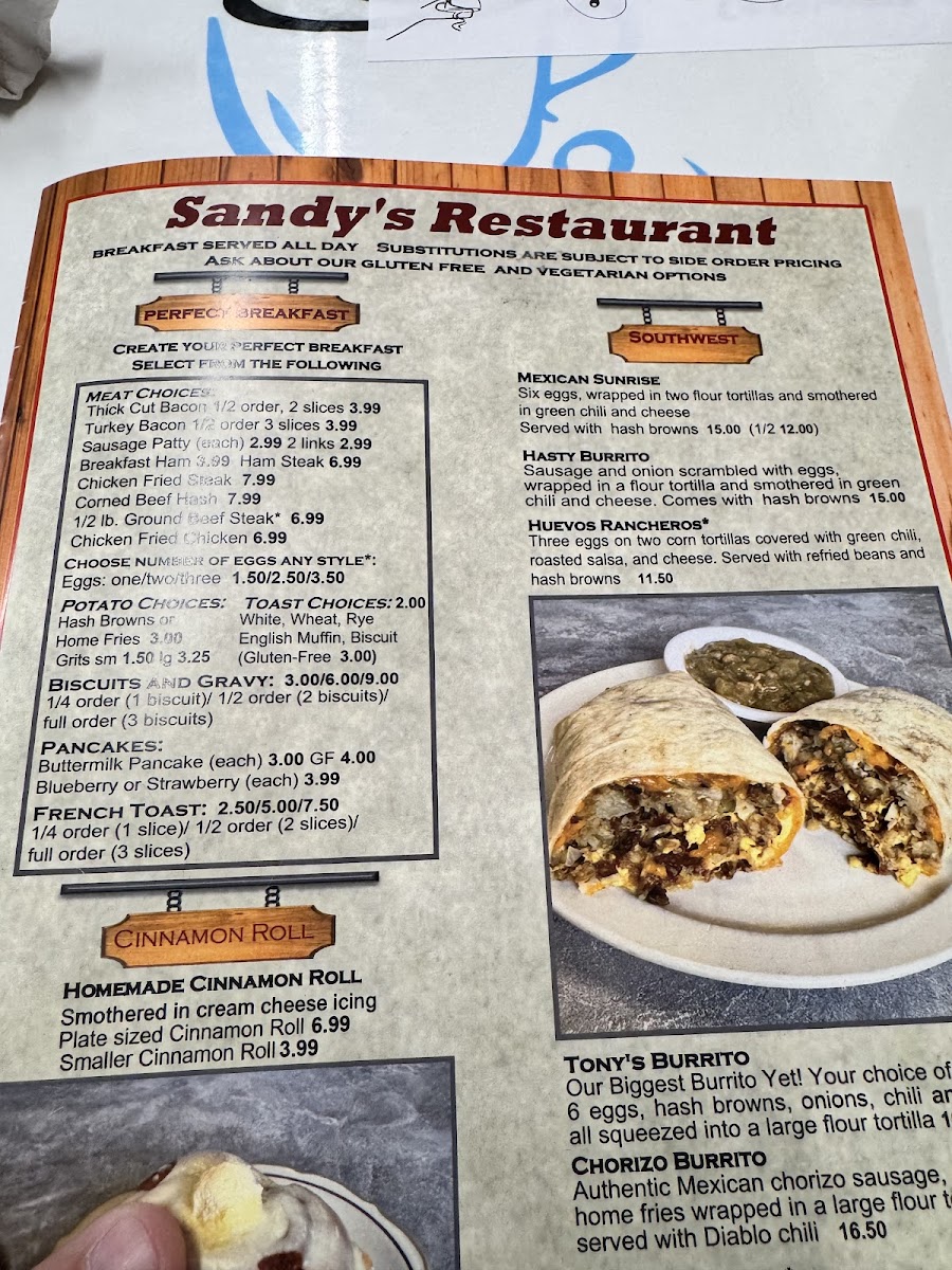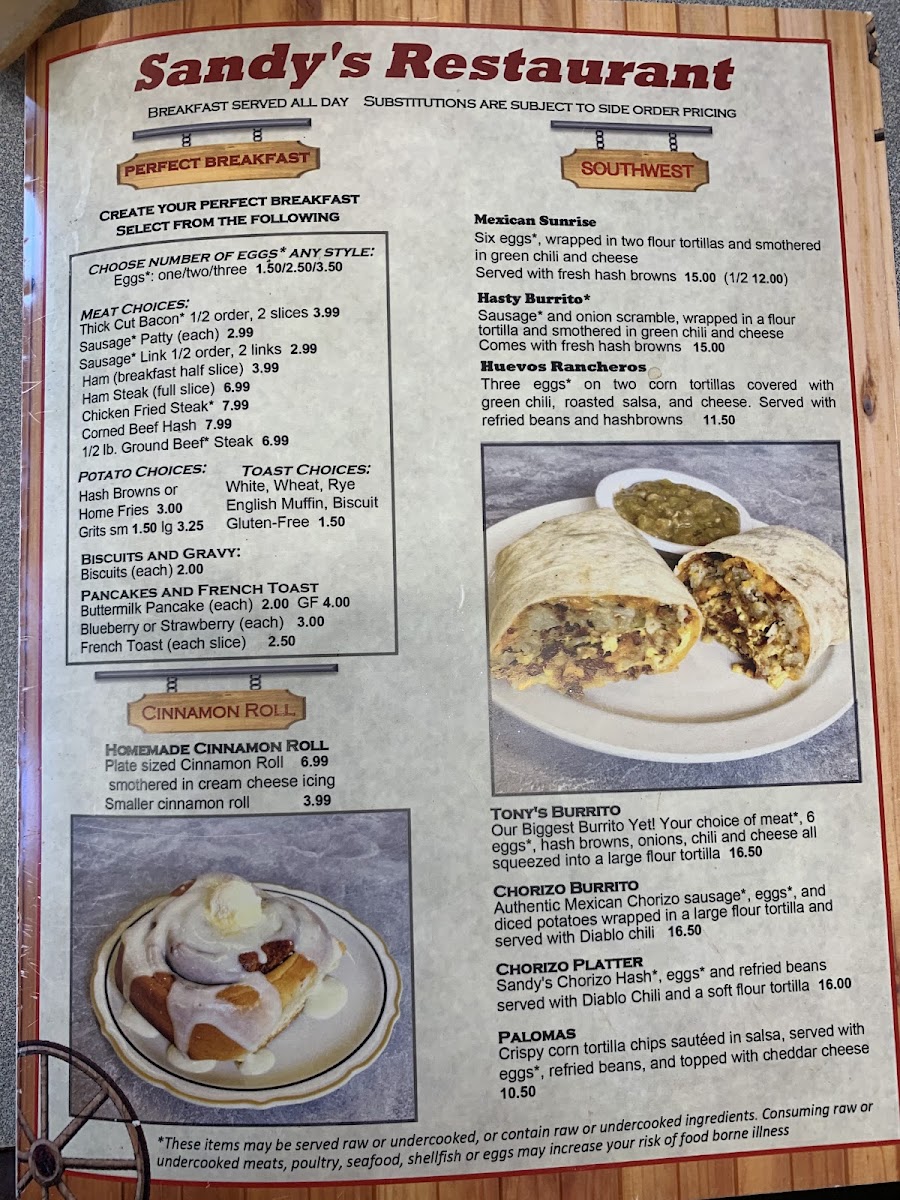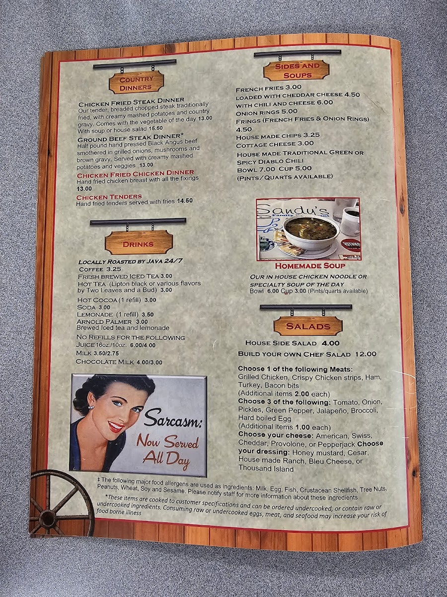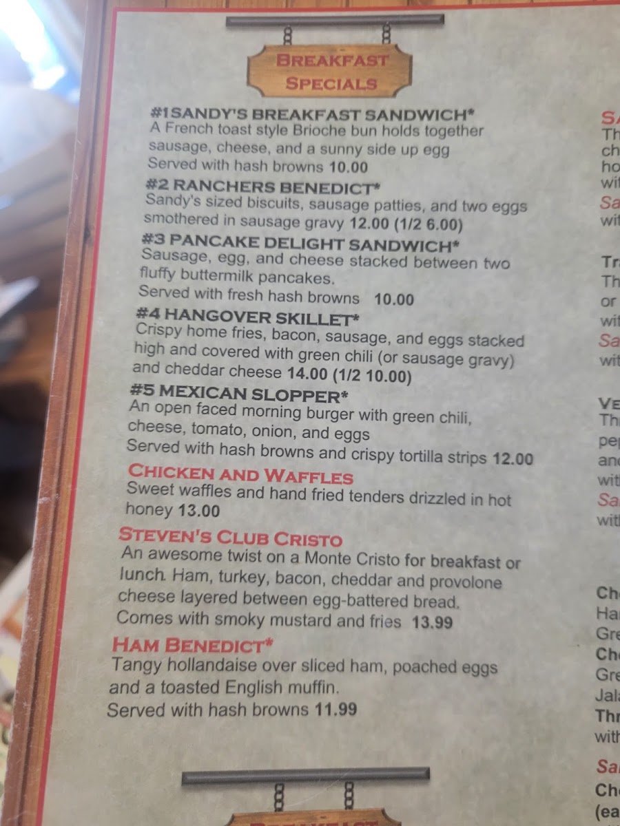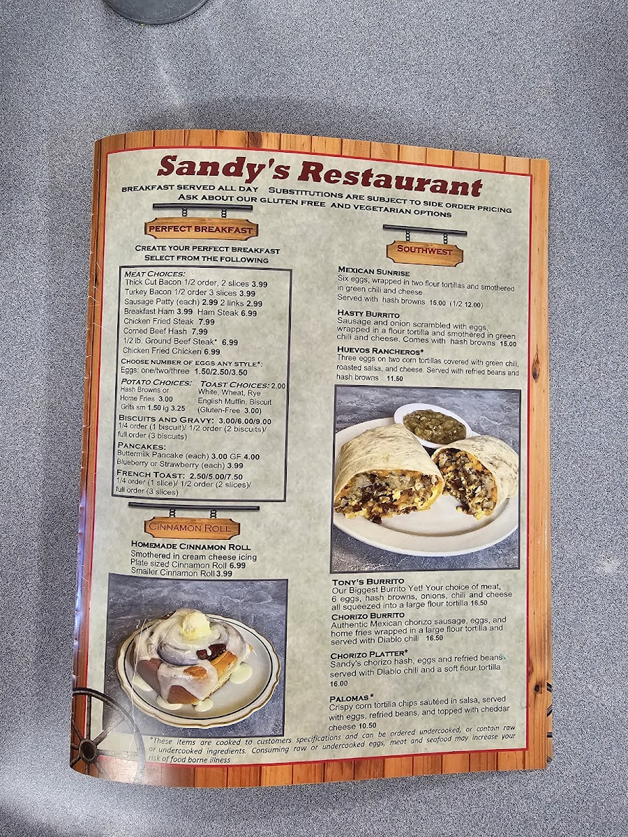 Sandy's Restaurant Menu