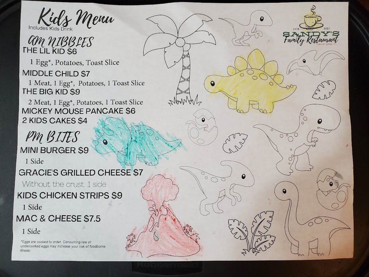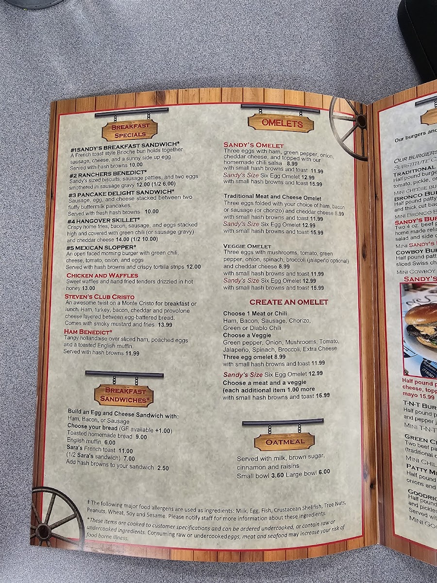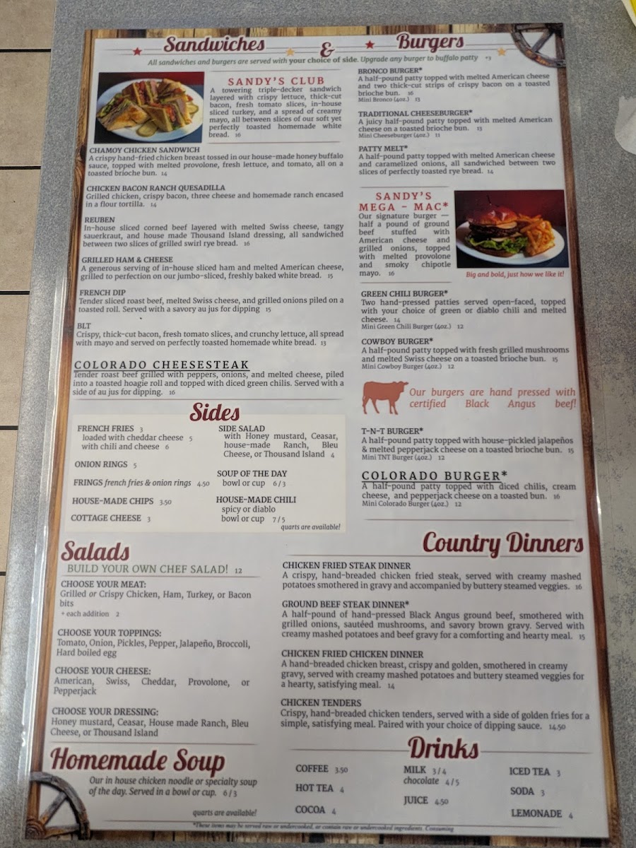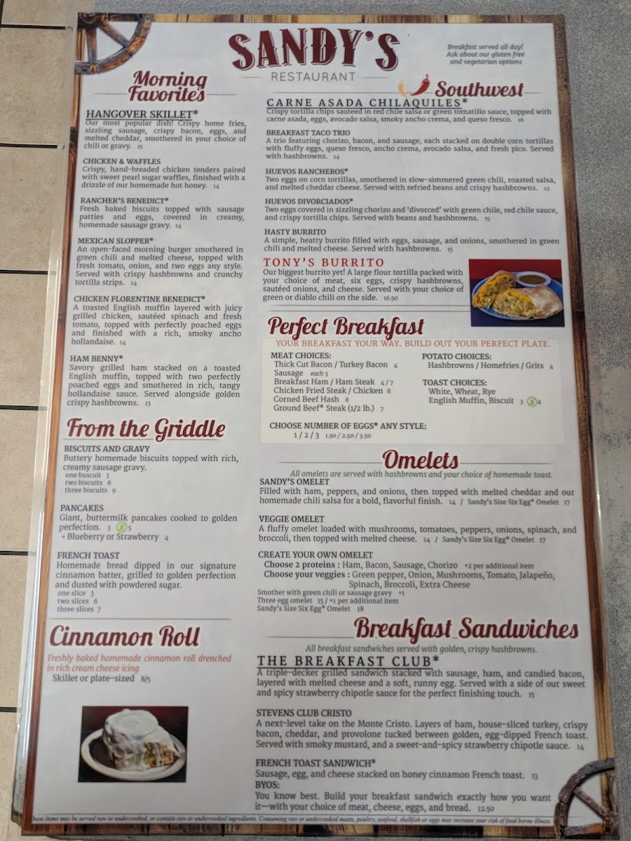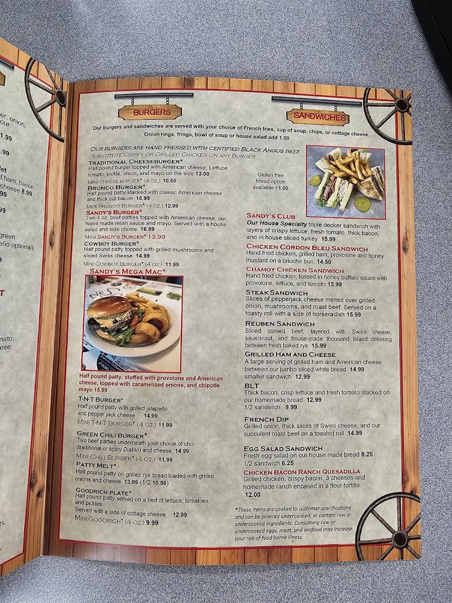 Sandy's Restaurant Menu